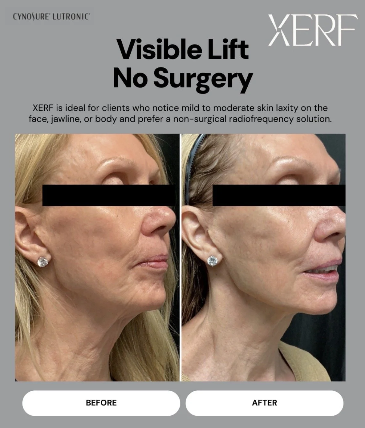 XERF uses advanced radiofrequency energy to stimulate your body’s natural collagen and elastin production. This helps improve skin firmness, smooth fine lines, and restore a more youthful, lifted appearance over time.
